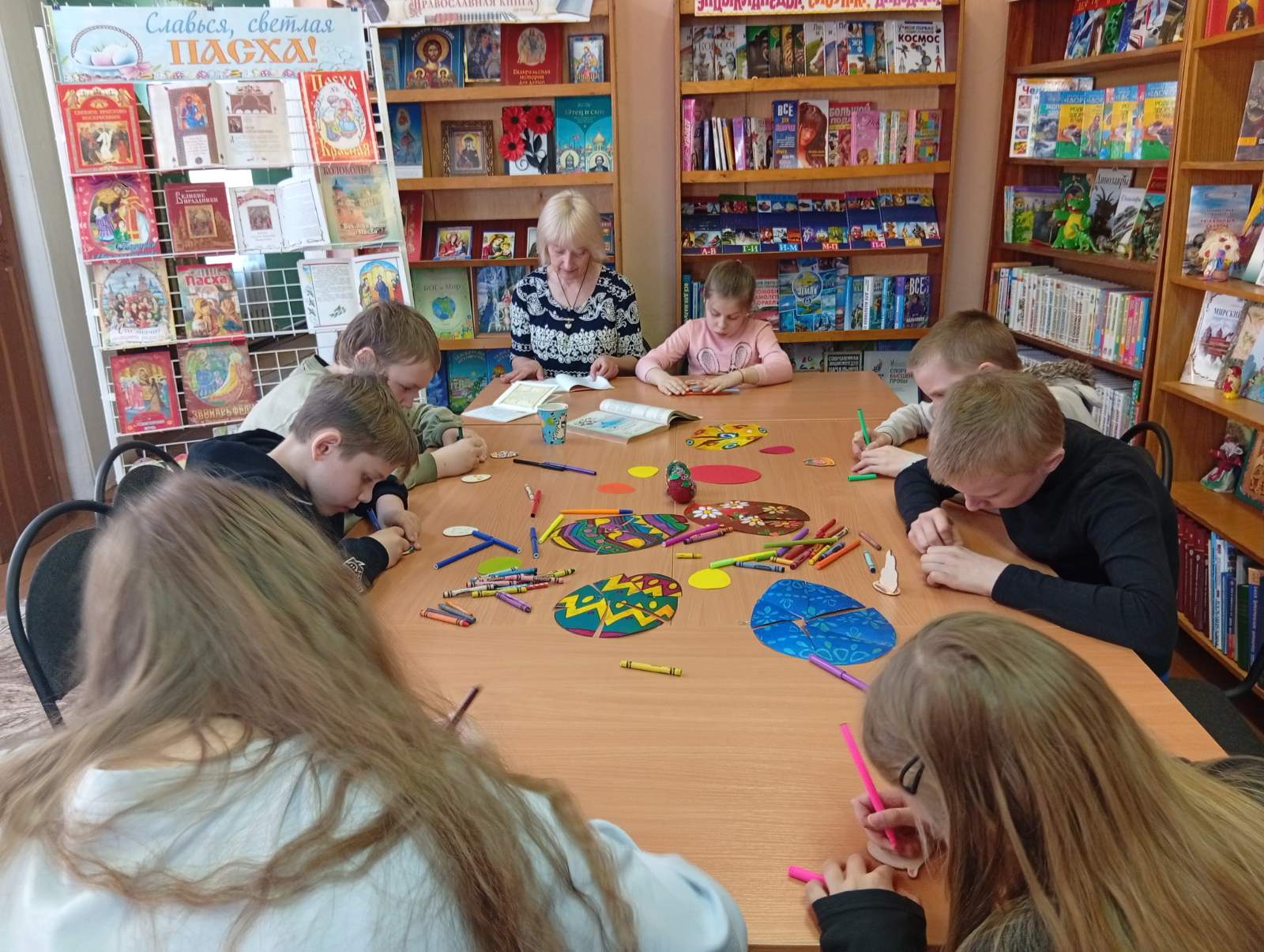 К Православному дню Светлого Христова Воскресения в библиотеках района прошёл ряд тематических мероприятий, направленных на духовное воспитание и популяризацию христианских традиций: мастер-класс ”Что значит подарить радость?“, час фольклора ”Праздник Светлого Воскресенья“, час духовного просвещения ”Светлый праздник – Пасха“, познавательный час ”Пасхальный перезвон“, вечер народной обрядности ”Пасхальной радости сиянье“, информационно-познавательная программа ”Пасхальные чудеса: от кулича до писанки“.