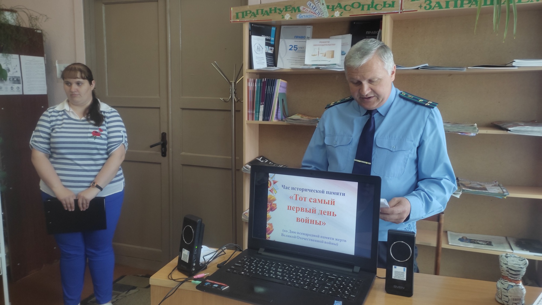Ко Дню всенародной памяти жертв Великой Отечественной войны совместно с ОДПГ в читальном зале центральной районной библиотеки прошел час исторической памяти «Первый день войны». Почётным гостем был прокурор Докшицкого района Нестерёнок Олег Альбинович.