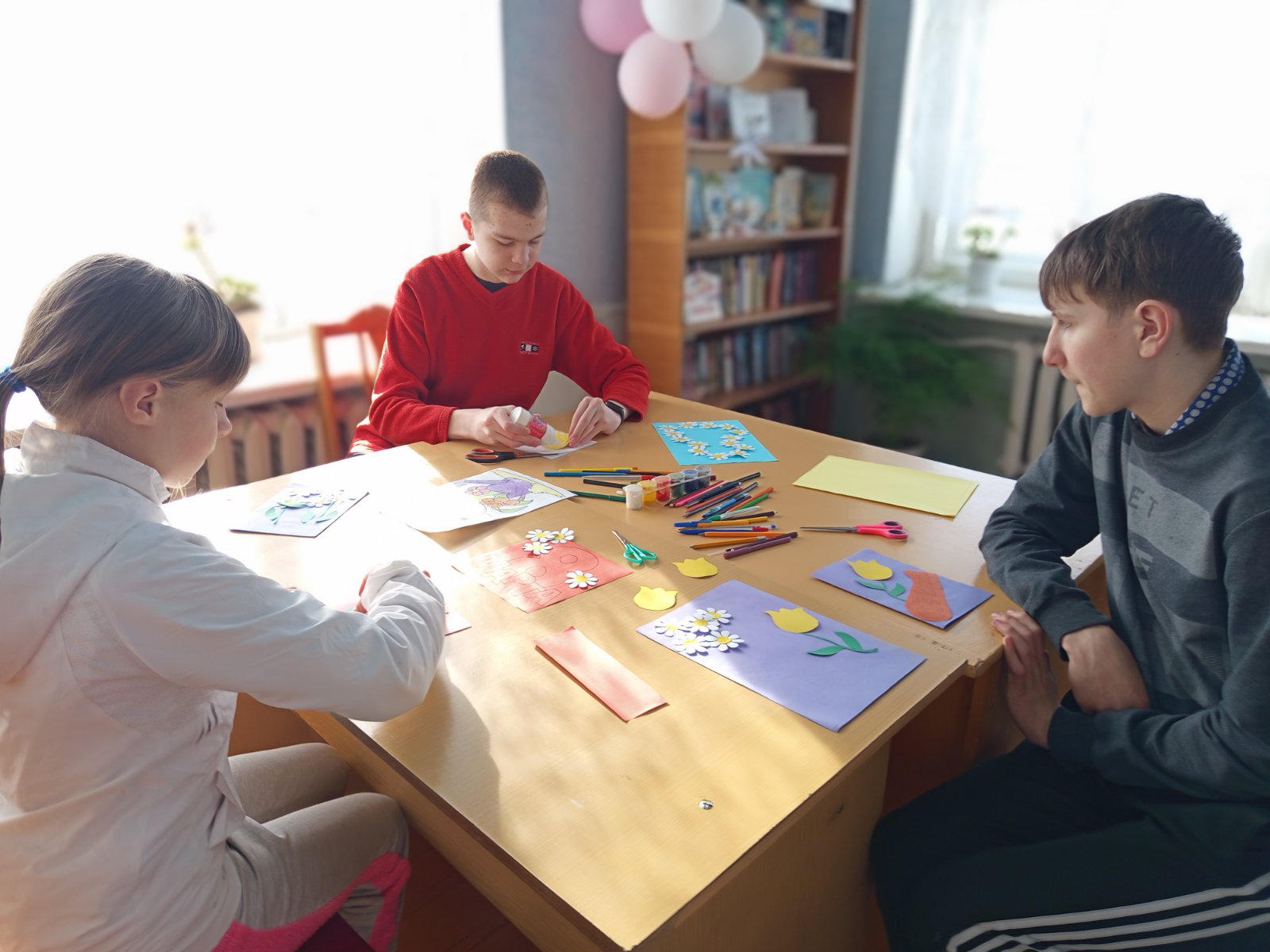 В преддверии Международного женского дня в Докшицкой центральной районной библиотеке для посетителей отделения социальной реабилитации, абилитации инвалидов прошла творческая мастерская ”Весенний букет“. В начале мероприятия библиотекарь рассказала об истории праздника, гости читали стихи о маме, затем все вместе приступили к изготовлению открытки-аппликации. Из цветной бумаги при помощи ножниц и клея были изготовлены простые, оригинальные и яркие открытки. Все участники творческой мастерской получили массу положительных эмоций и хорошее настроение. У каждого получилась своя неповторимая, яркая, оригинальная открытка, наполненная теплотой и любовью.