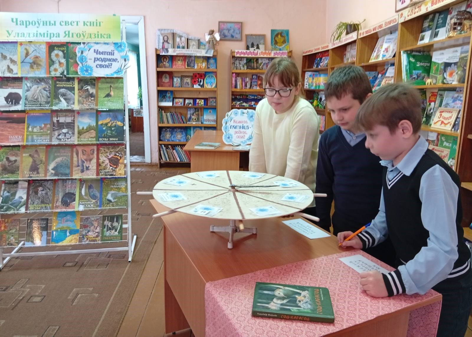 У Бягомльскай гарпасялковай бібліятэцы імя П. Панчанкі дзеці падчас літаратурнай гульні ”Дзіўнае побач“ успомнілі факты, якія Уладзімір Ягоўдзік раскрывае ў сваіх творах аб прыродзе, прынялі актыўны ўдзел у гучных чытаннях яго апавяданнняў, адказалі на пытанні бібліятэкара. А кніжная выстава ”Чароўны свет кніг Уладзіміра Іванавіча Ягоўдзіка“ пазнаёміла з самымі цікавымі творамі аўтара.