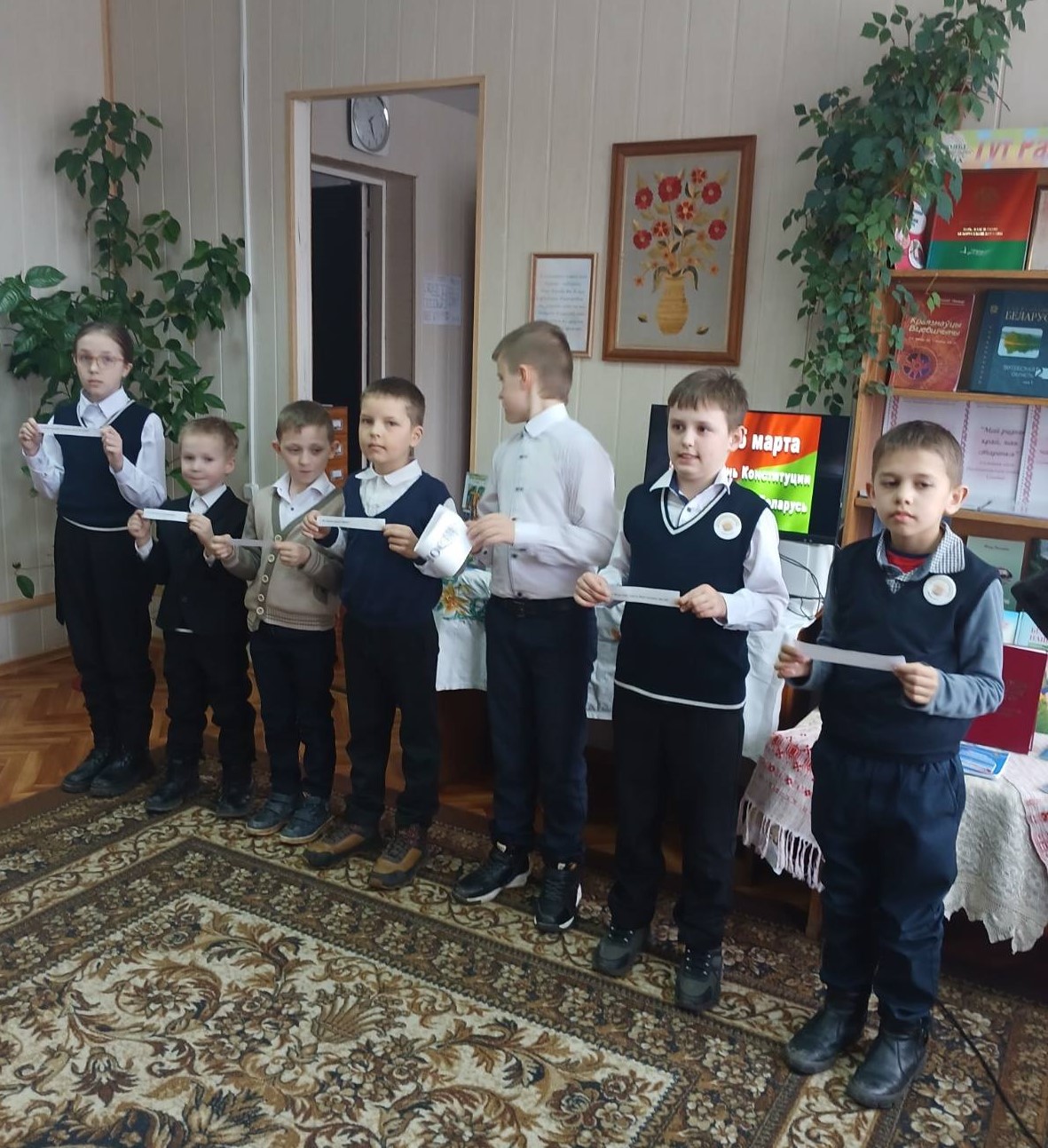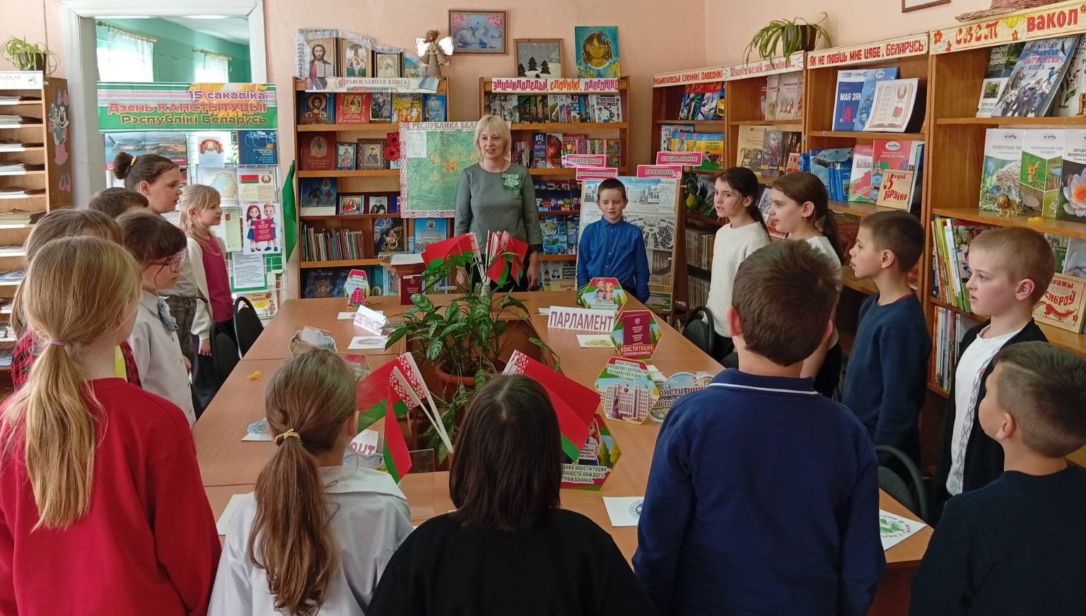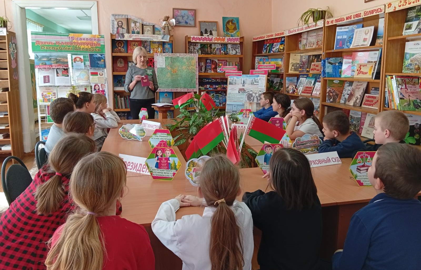 Ко Дню Конституции Республики Беларусь в Бегомльской горпоселковой библиотеке им. П. Панченко прошёл правовой урок ”Я – гражданин Республики Беларусь“. Вначале учащиеся 3 класса познакомились с основными терминами законодательства, получили доступную и интересную информацию об Основном Законе нашей страны. Вторая часть мероприятия прошла в игровой форме. Очень эмоциональными стали выборы президента 3 ”А“ класса и принятие им присяги. На станции ”Парламент“ участники, используя политико-административную карту Республики Беларусь, подсчитали количество депутатов Совета Республики и сами побывали в их роли. На следующей станции дети познакомились с адресом, видом здания и составом Правительства Республики Беларусь. Бурно прошли выборы 10 одноклассников, подходящих на должности министров, которые должны были на скорость собрать из частей эмблему ”своего“ министерства. Состоялось знакомство школьников и с судебной системой государства, юридическими понятиями.